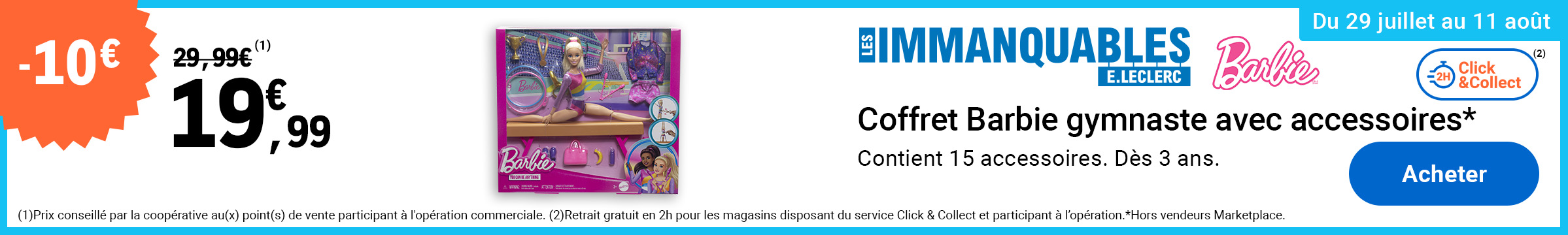 Re: Leclerc : coffret Barbie gymnaste avec accessoires 19.99€ (29/07 - 11/08)