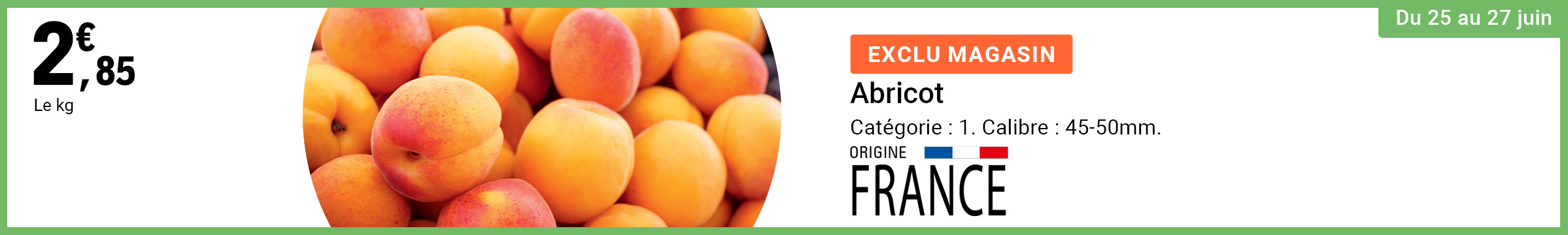 Leclerc : abricot origine France 2.85€ le kg (25/06 - 27/06)