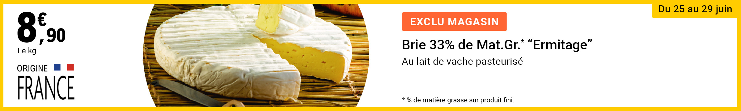 Leclerc : brie "Ermitage" origine France 8.90€ le kg (25/06 - 29/06)