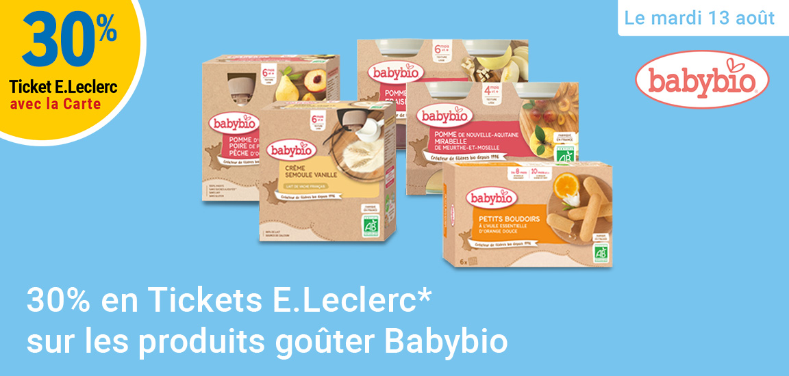 Sujet: Leclerc : 30% en tickets leclerc sur les produits goûter Babybio (Le 13/08) (Lu 449 fois)