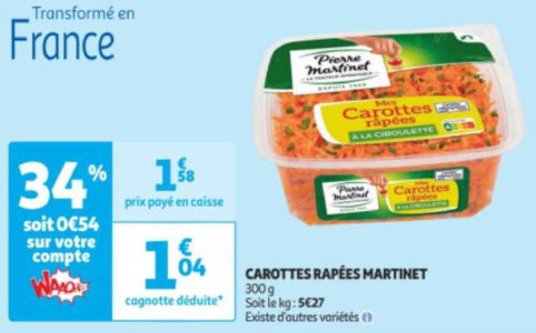 Carottes Râpées Pierre Martinet chez Auchan Supermarché (14/08 - 18/08)