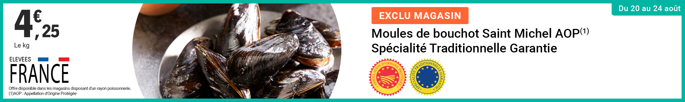 Leclerc : moules de bouchot St Michel AOP France 4.25€ le kg (20/08 - 24/08)