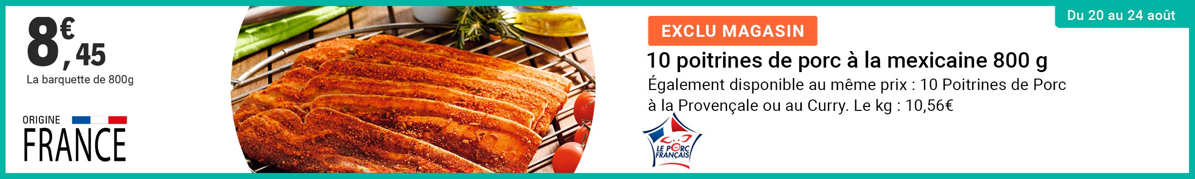 Leclerc : 10 tranches de poitrine de porc origine France 8.45€ (20/8-24/8)