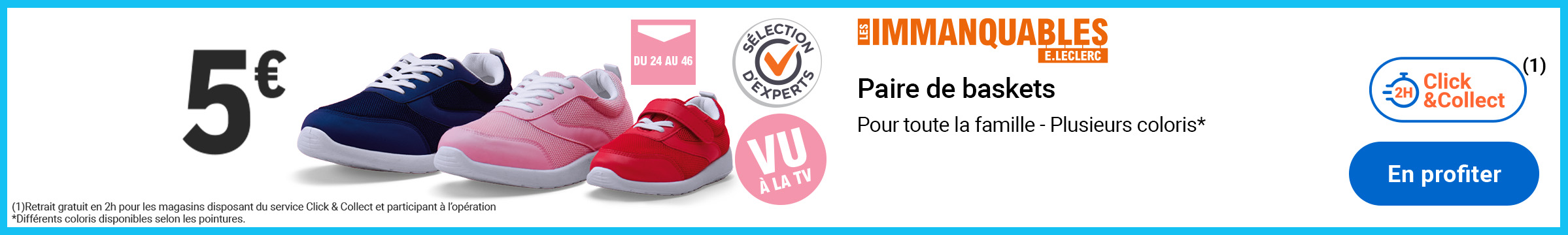 Leclerc : paire de baskets pour toute la famille 5€ (20/08 - 31/08)