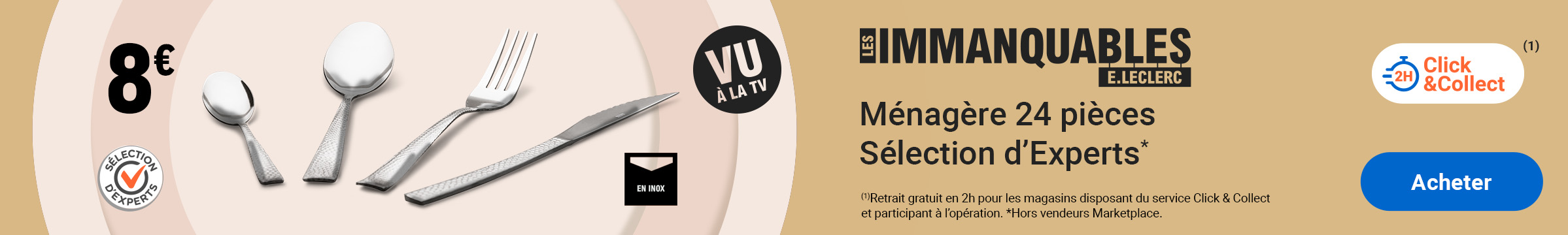 Leclerc : ménagère 24 pièces en inox Sélection d'Experts 8€ (15/09 - 13/01)