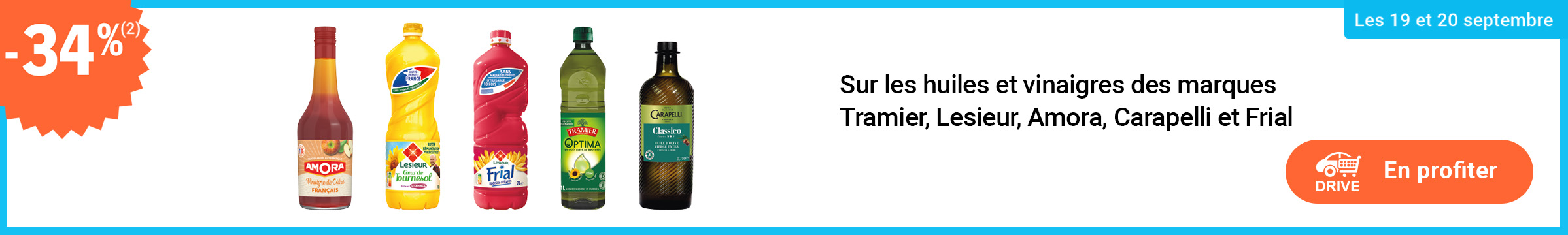 Auteur Sujet: Leclerc : 34% de RI sur sélection de marques huiles et vinaigres (19/09 - 20/09)  (Lu 963 fois)