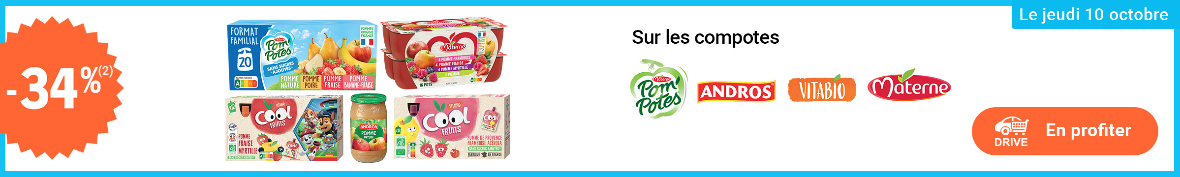 Auteur Sujet: Leclerc : 34% de RI sur compotes Materne/Vitabio/Andros/Pom'potes (Le 10/10)  (Lu 801 fois)