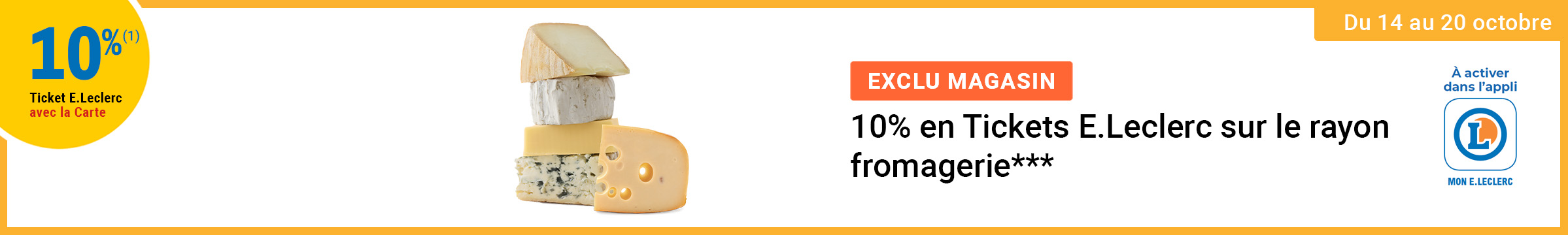 Re: Leclerc : 10% en tickets leclerc sur le rayon fromagerie (14/10 - 20/10)