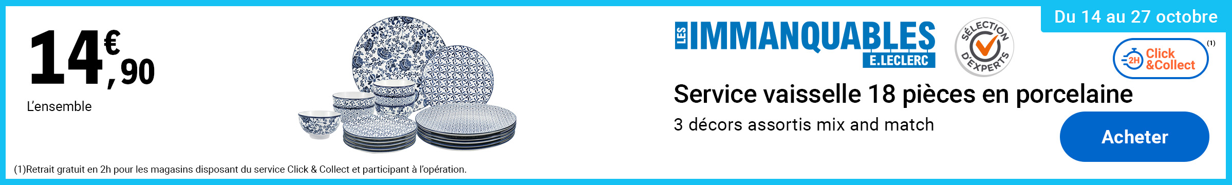 Leclerc : service vaisselle 18 pièces en porcelaine 14.90€ (14/10 - 27/10)