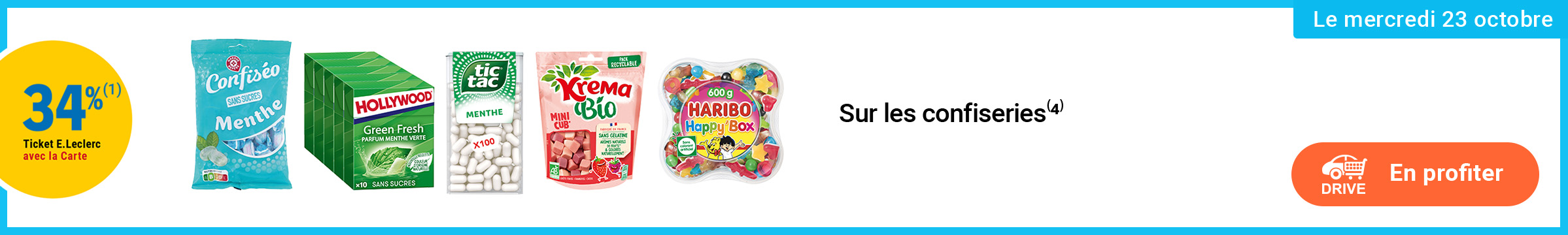 Re: Leclerc : 34% en tickets leclerc sur les confiseries (Le 23/10)