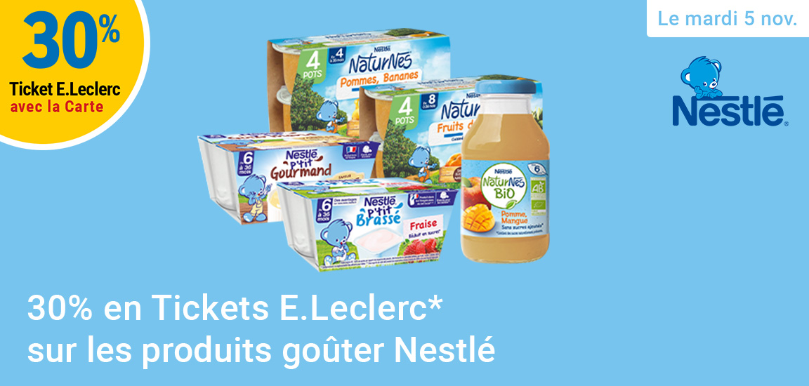 Leclerc : 30% en tickets leclerc sur les produits goûter Nestlé (Le 05/11)