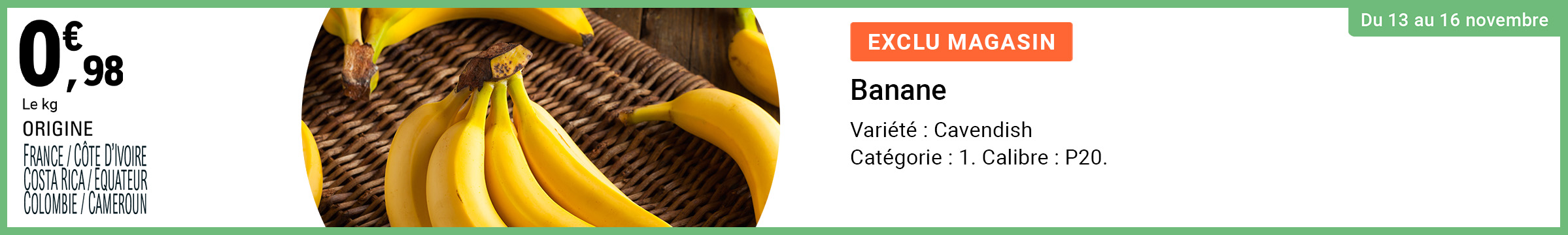 Leclerc : banane Cavendish 0.98€ le kg (13/11 - 16/11)