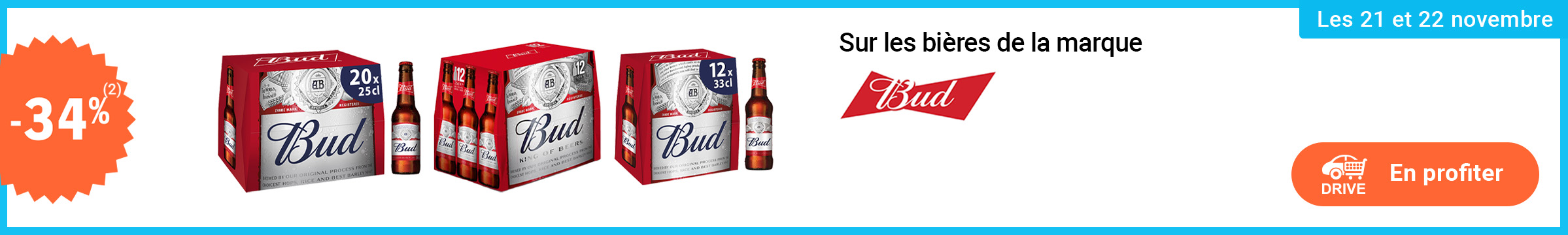 (2) En magasin, avantage immédiat réservé aux porteurs de la Carte de fidélité. Offre non cumulable avec des produits de la même gamme bénéficiant d’une autre promotion. Offre limitée à 5 produits par foyer pour cette opération et réservée à une consommation personnelle. Le magasin se réserve le droit de refuser toute demande d’une quantité supérieure aux besoins habituels généralement constatés pour une consommation personnelle. Offre interdite à la revente.