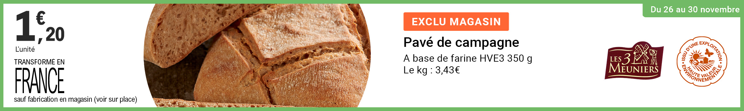 Leclerc : pavé de campagne 350g Les 3 Meuniers 1.20€ l'unité (26/11 - 30/11))