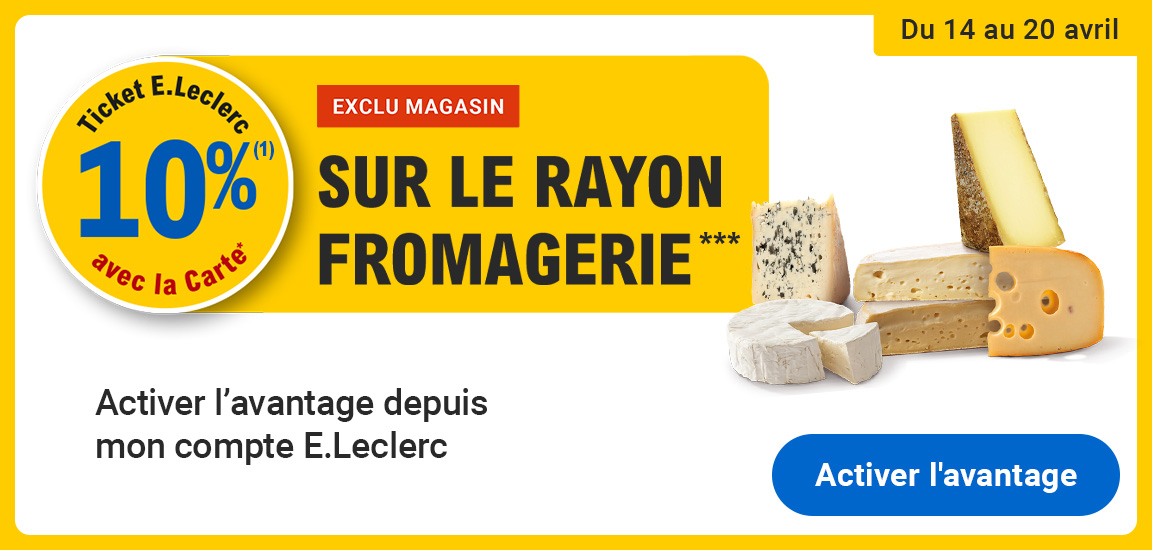 Re: Leclerc : 10% en tickets leclerc sur le rayon fromagerie (14/04 - 20/04)