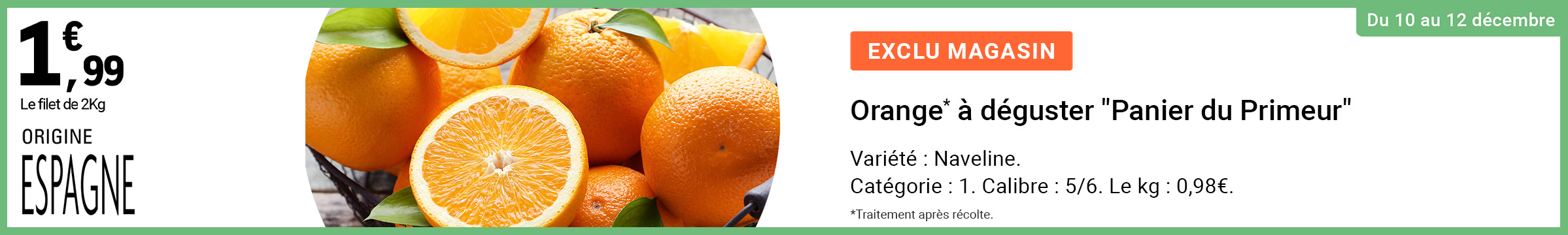 Leclerc : orange à déguster "Panier du Primeur" 1.99€ les 2 kg (10/12 - 12/12)