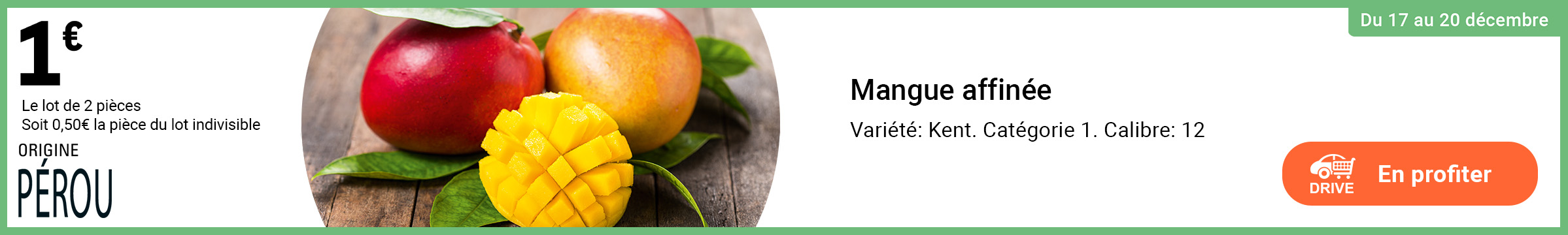 Leclerc : mangue affinée origine Pérou 1 € le lot de 2 (17/12 - 20/12)