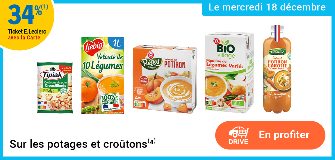 Re: Leclerc : 34% en tickets leclerc sur les potages et croûtons (Le 18/12)