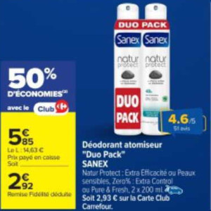 Re: Lot de 2 Déodorants Sanex chez Carrefour (04/03 - 17/03)