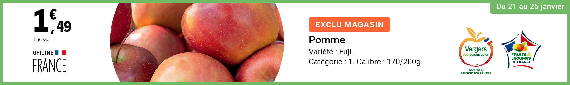 Leclerc : pomme variété Fuji origine France 1.49€ le kg (21/01 - 25/01)