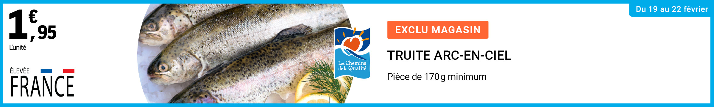 Leclerc : truite arc-en-ciel élevée en France 1.95€ l'unité (19/02 - 22/02)