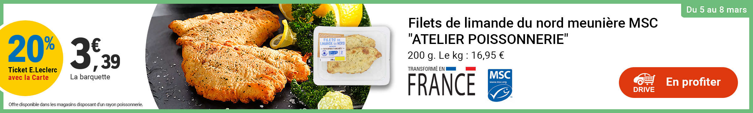 Re: Leclerc : 20% en tickets leclerc sur filets limande 3.39€ la barquette (5/3-8/3)