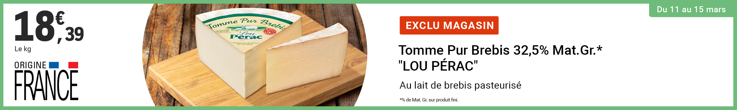 Re: Leclerc : tomme pur brebis "Lou Pérac" origine France 18.39€ le kg (11/3 - 15/3)