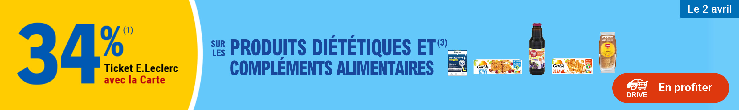Auteur Sujet: Leclerc : 34% en carte produits diététiques/compléments alimentaires (Le 2/4)  (Lu 435 fois)