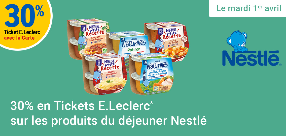 Re: Leclerc : 30% en tickets leclerc sur les produits du déjeuner Nestlé (Le 01/04)