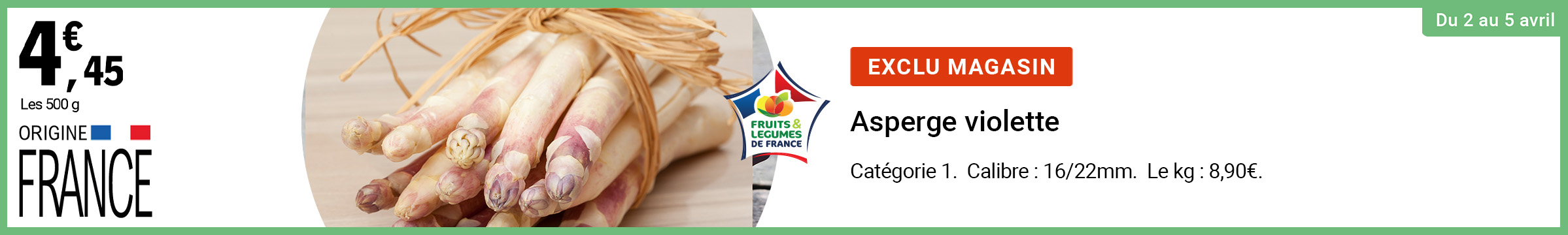 Re: Leclerc : asperge violette origine France 4.45€ les 500g (02/04 - 05/04)