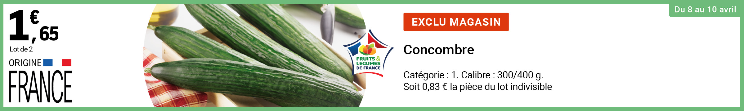 Re: Leclerc : concombre origine France 1.65€ le lot de 2 (08/04 - 10/04)