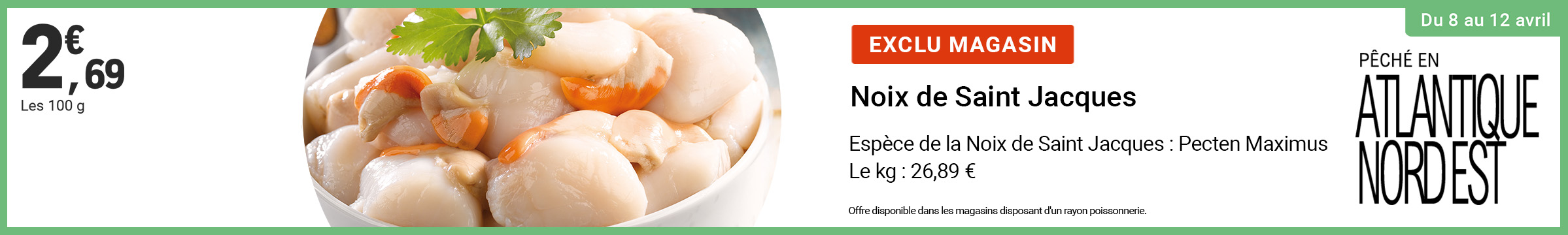 Leclerc : noix de Saint Jacques 2.69€ les 100g (08/04 - 12/04)