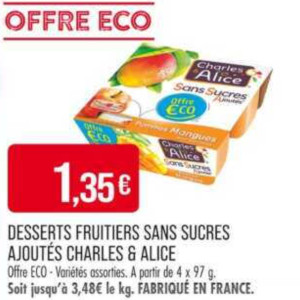Desserts Sans Sucres Ajoutés Charles & Alice chez Match (16/04 - 21/04)