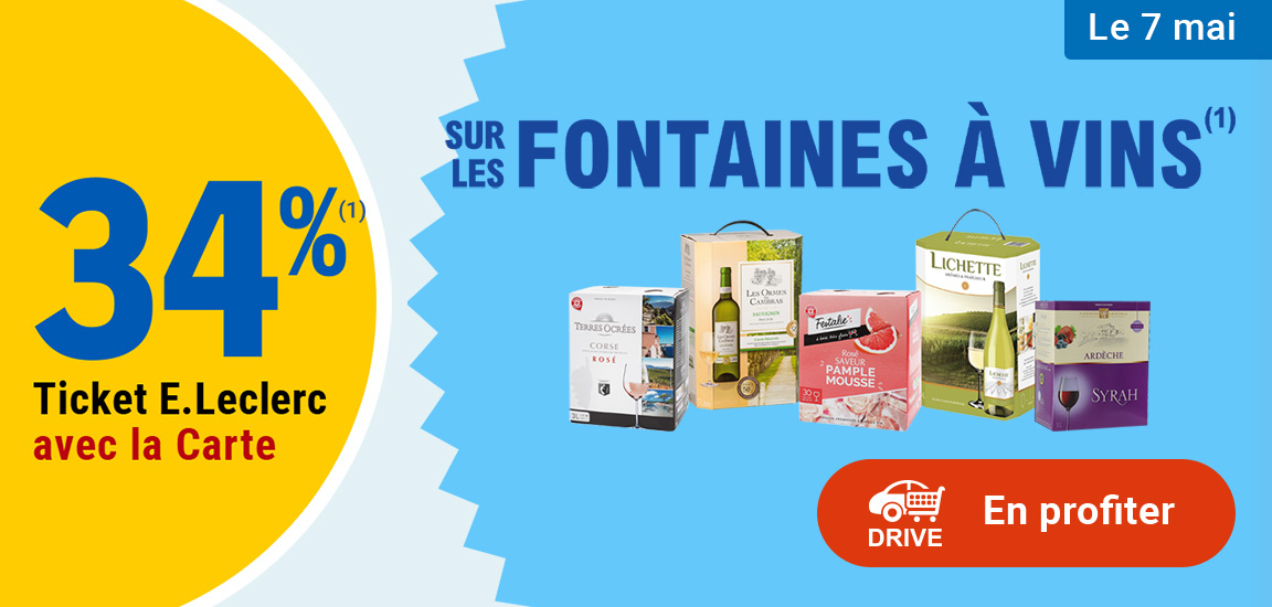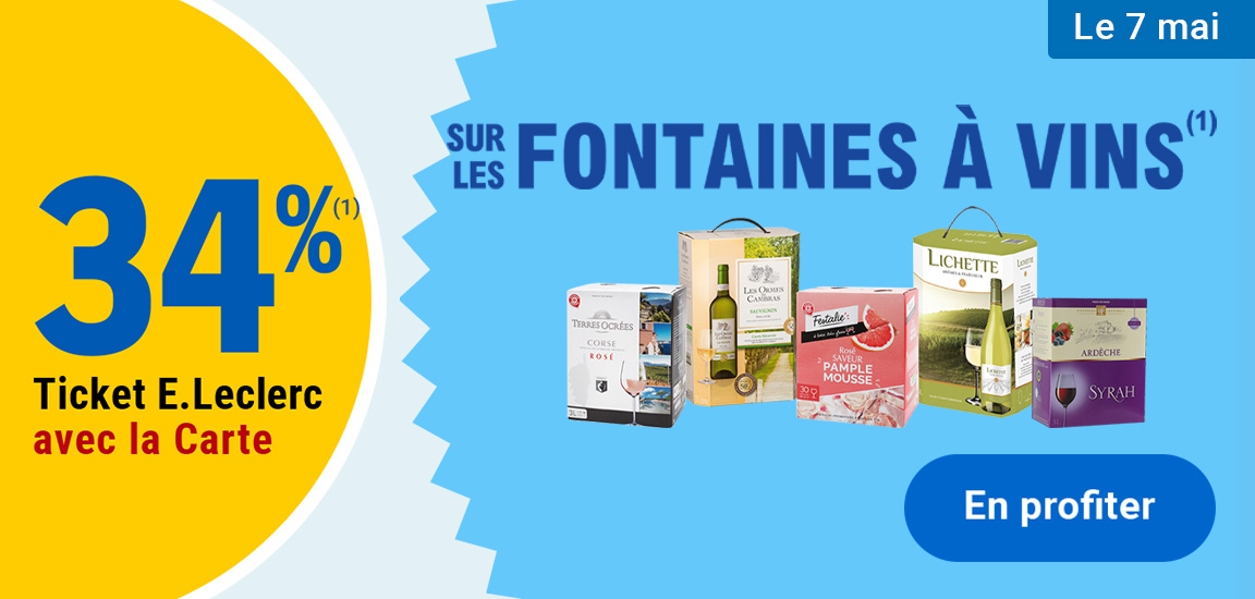 Auteur Sujet: Leclerc : 34% en tickets leclerc sur les fontaines à vins (Le 07/05)  (Lu 400 fois)