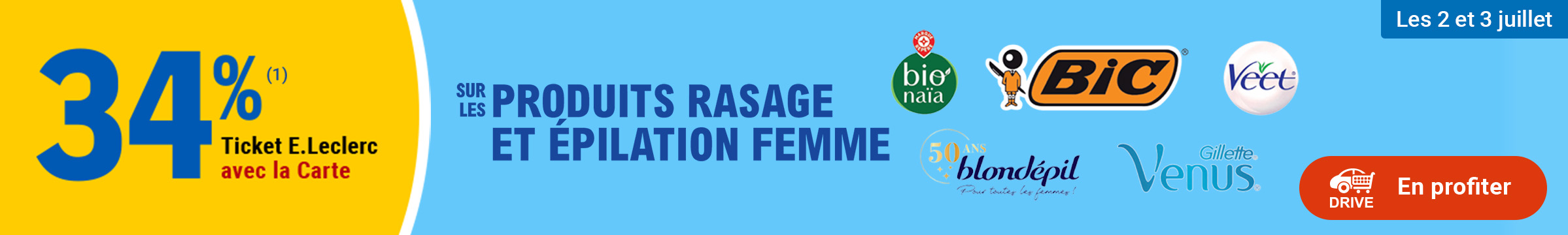 Auteur Sujet: Leclerc : 34% en ticket leclerc sur produits rasage/épilation femme (2/7 - 3/7)  (Lu 213 fois)