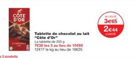 Tablette de Chocolat l'Original COTE D'OR chez Monoprix (07/10 - 19/10)