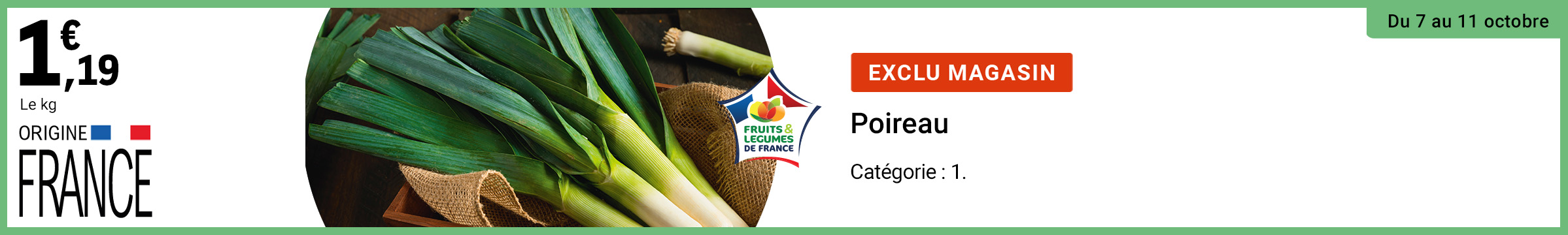 Sujet: Leclerc : poireau origine France 1.19€ le kg (07/10 - 11/10) (Lu 250 fois)