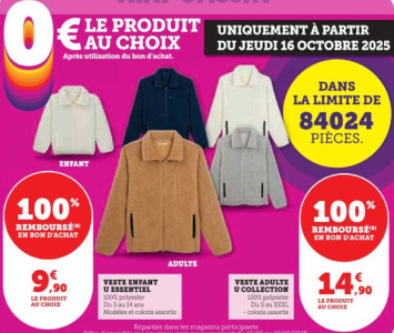 Re: Veste Adulte ou Enfant 100% remboursée en BA chez Magasins U (16/10 - 19/10)