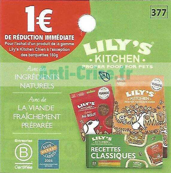 Bdr 1€ LILY'S KITCHEN Chien (hors barquettes 150g)