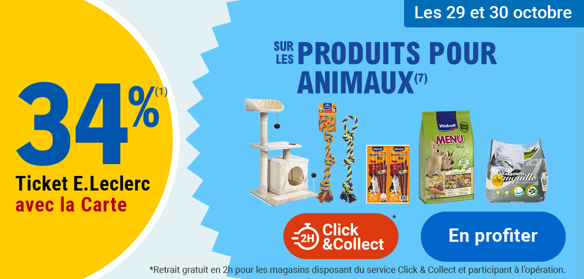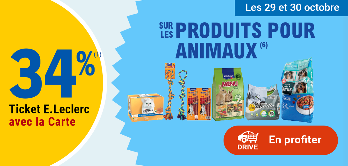 Auteur Sujet: Leclerc : 34% en ticket leclerc sur les produits pour animaux (29/10 - 30/10)  (Lu 344 fois)