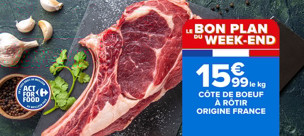 Carrefour et Market : Côte de boeuf Française 15,99€ le kg (31/10 - 02/11)