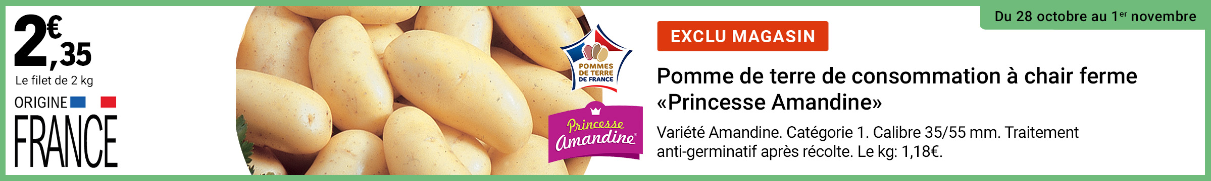 Sujet: Leclerc : pomme de terre origine France 2.35€ les 2 kg (28/10 - 01/11) (Lu 294 fois)