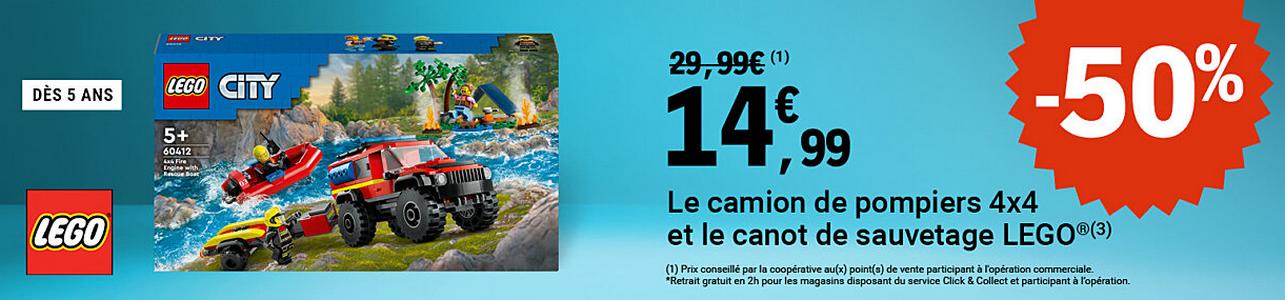 Leclerc : Camion de pompiers 4x4 + Canot de sauvetage LEGO à 14,99€