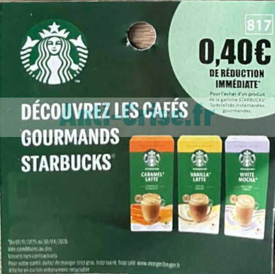 Auteur Sujet: Br 0,40€ STARBUCKS Spécialités Instantanées  (Lu 104 fois)