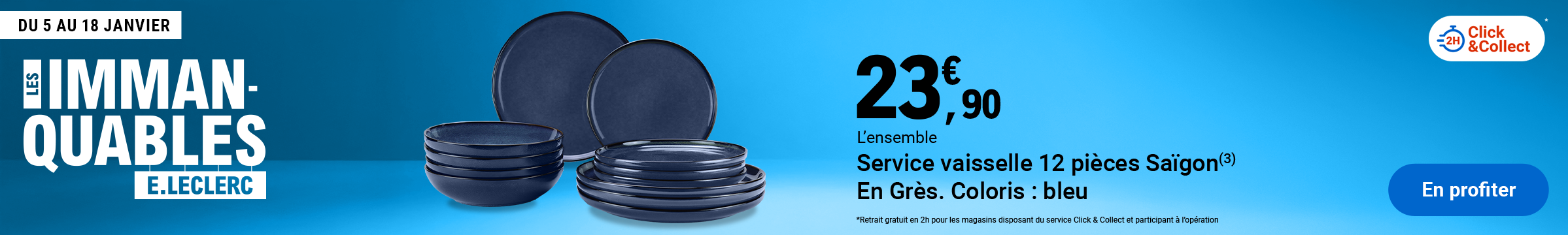 Leclerc : service vaissette 12 pièces en grès bleu Saïgon 23.90€ (05/01 - 18/01)