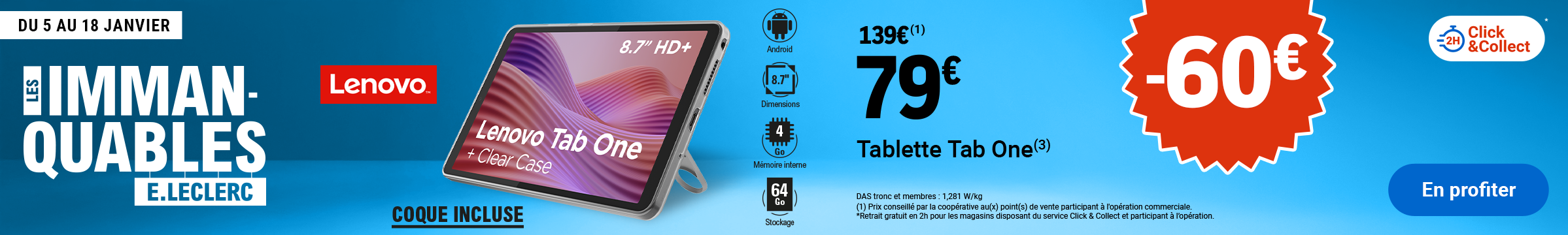 Leclerc : tablette Tab One Lenovo 79€ (05/01 - 18/01)