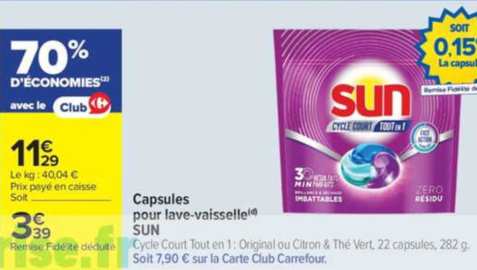 Sujet: Capsules Lave-Vaisselle sun chez Carrefour Market (27/01 - 08/02) (Lu 111 fois)