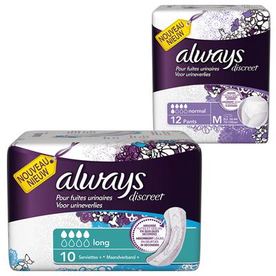 Always Discreet: 1 pack de la gamme Always Discreet pour fuites urinaires