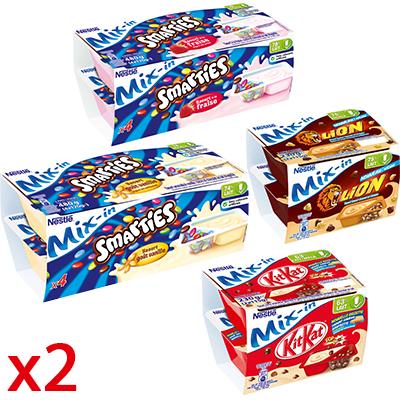 Deux packs de yaourts au choix parmi Lion 2x115g, KitKat 2x115g, Smarties Vanille 4x120g ou Smarties Fraise 4x120g.