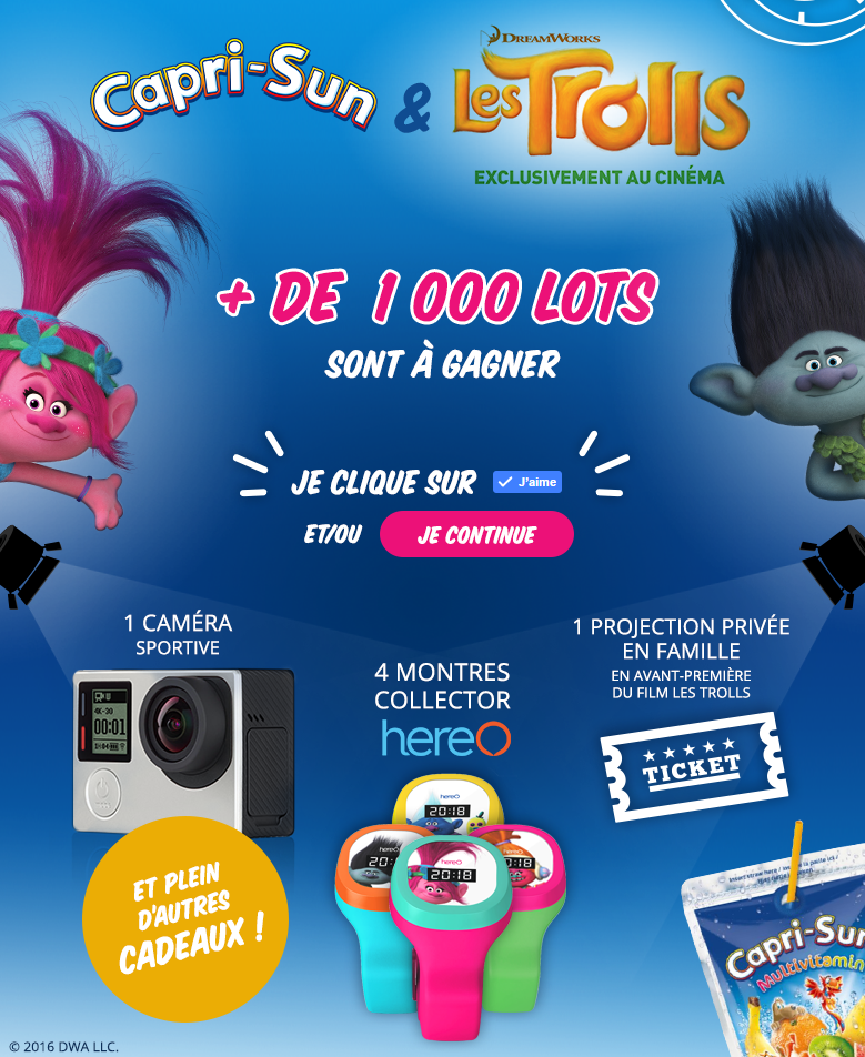 - 30 lots composés d’une affiche du film + 10 bons de réduction (valables sur la gamme CapriSun Fruit Crush et Bio jusqu’au 31 Décembre 2016) d’une valeur commerciale de 13€ TTC.